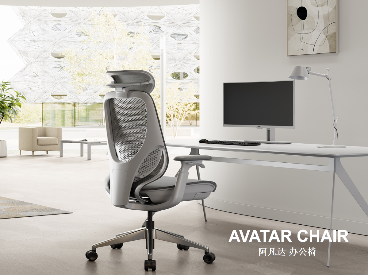 : Avatar - 中背,白框,扶手线控机构,4D靠背联动扶手,铝合金脚